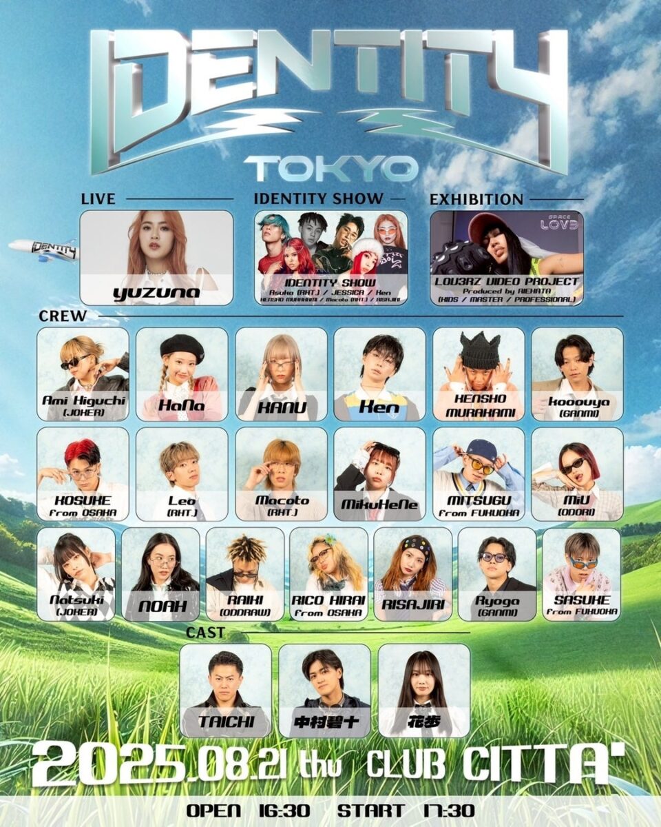 本イベントは、若手精鋭ダンサーのみが出演し、自らの“IDENTITY”を体現する渾身のパフォーマンスを披露する注目のCREWイベント。ゲストライブにはyuzuna、さらに世界的ダンサーRIEHATAも登場。