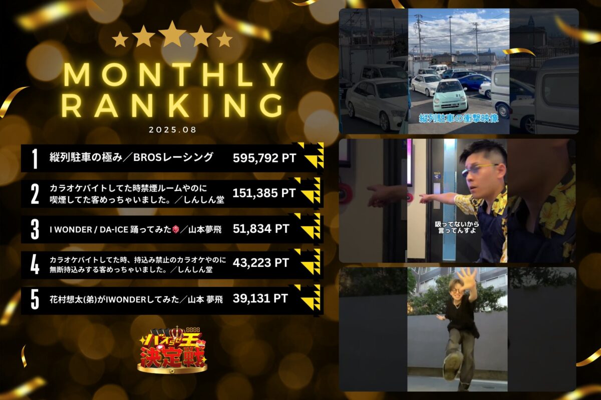 全国77店舗以上を展開するレンタルスタジオ「STUDIO BUZZ」などを運営する株式会社BUZZ GROUP(本社:東京都港区、代表取締役:渡辺 憲)は、賞金1,000万円の大型動画コンテスト「バズらせ王決定戦」の8月の月間ランキングを発表いたします。