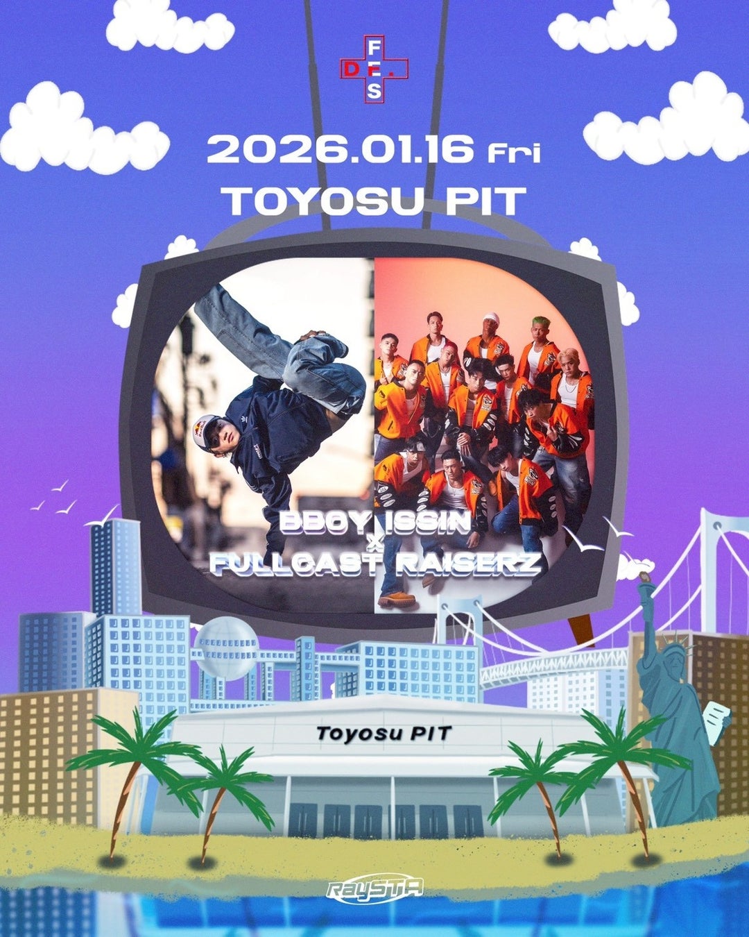 ■ BBOY ISSIN X FULLCAST RAISERZ BBOY ISSINは世界最大の1on1ブレイキンバトル「Red Bull BC One World Final Tokyo 2025」で優勝した世界王者。FULLCAST RAISERZはDリーグを代表するクランプチームとして圧倒的な存在感を放っています。